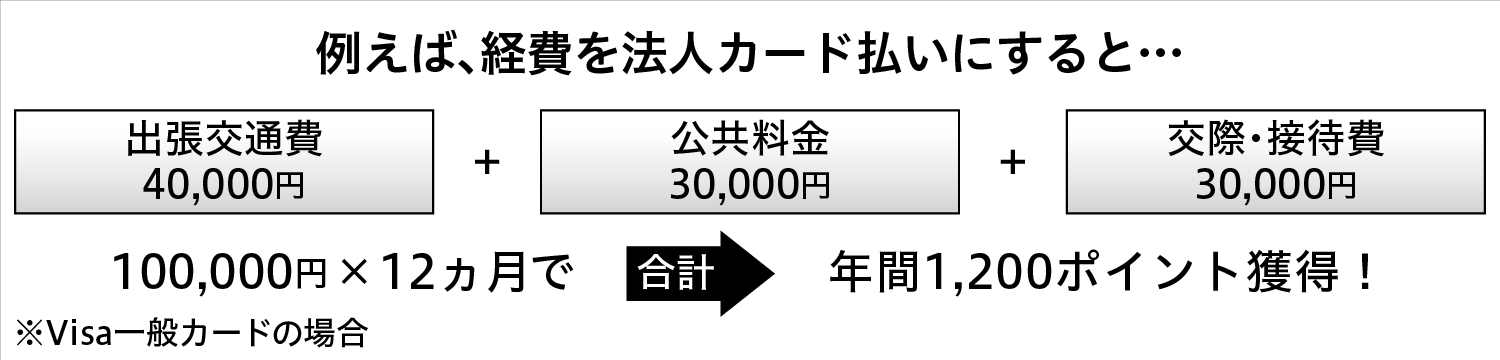 これまで振込していた経費の支払いに法人カードを利用すれば、利用額に応じてポイントが貯まってお得です。
